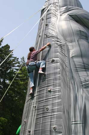 A 28' tall rock wall with two operators for safety